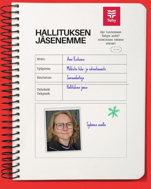 Tehyn ammattiosasto 527 palvelee Etelä-Savon hyvinvointialueen ja alueen kuntien ja kaupunkien tehyläisiä jäseniä.